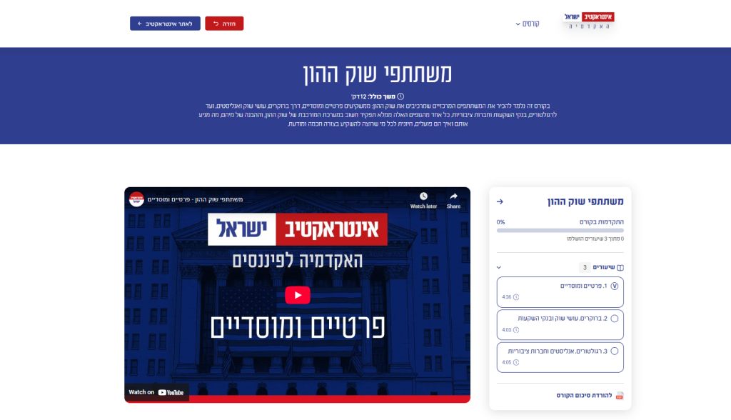 האקדמיה זמינה כבר עכשיו ללא עלות, ומציעה לכל מי שמעוניין לצלול לעולם ההשקעות מסגרת לימודית ברורה, נגישה ורלוונטית למציאות הפיננסית של היום.