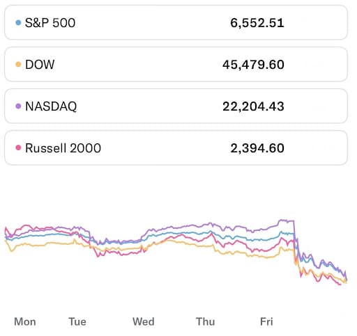 שוק ההון סיים שבוע של ירידות בעקבות התחדשות מלחמת הסחר בין סין לארה”ב. מדד ה-S&P 500 ירד ב-2.43%, הנאסד”ק סגר בירידה של 2.53%, הדאו ג’ונס ירד ב-2.73%. תשואות האג”ח לעשור ירדו ב-1.65% אל 4.05%.