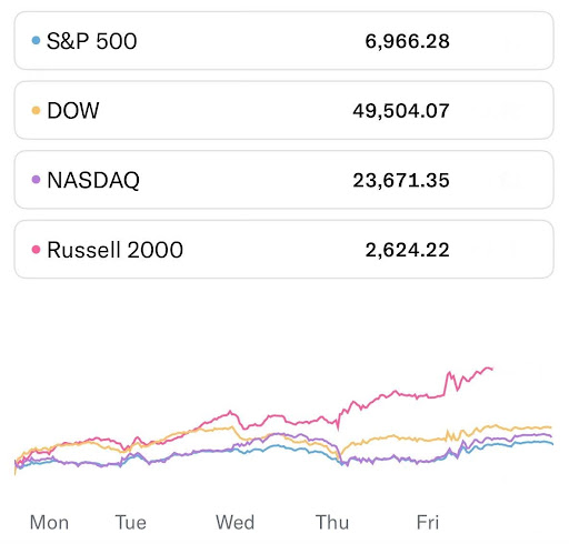 שוק ההון סגר שבוע של עליות לאחר שנתון המשרות במגזר הלא-חקלאי היה מתון מהצפוי והפחית חשש להידוק מוניטרי מצד הפד'. מדד ה-S&P 500 עלה ב-1.57%, הנאסד"ק סגר בעליה של 1.88%, הדאו ג'ונס עלה ב-2.32%. תשואות האג"ח לעשור ירדו ב-0.43% אל 4.16%.