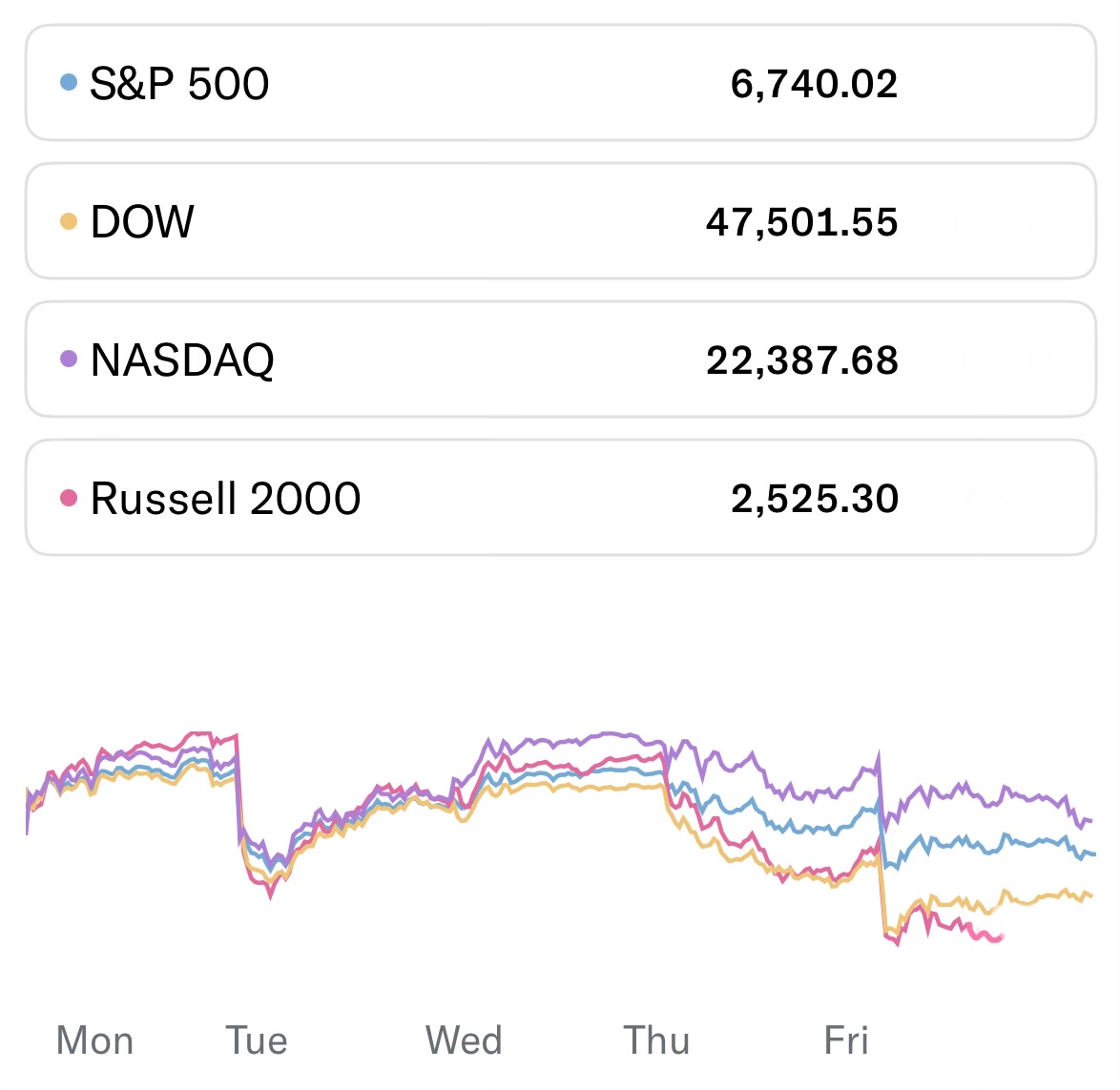 שוק ההון סגר שבוע של ירידות על רקע דו"ח תעסוקה חלש מהצפוי, לצד עליית מחירי הנפט בעקבות חסימת מצרי הורמוז במהלך העימות עם איראן. מדד ה-S&P500 ירד ב-2.02%, הנאסד"ק סגר ירידה של 1.24%, הדאו ג'ונס ירד ב-3.01%. תשואות האג"ח לעשור עלו ב-4.29% אל 4.138%.