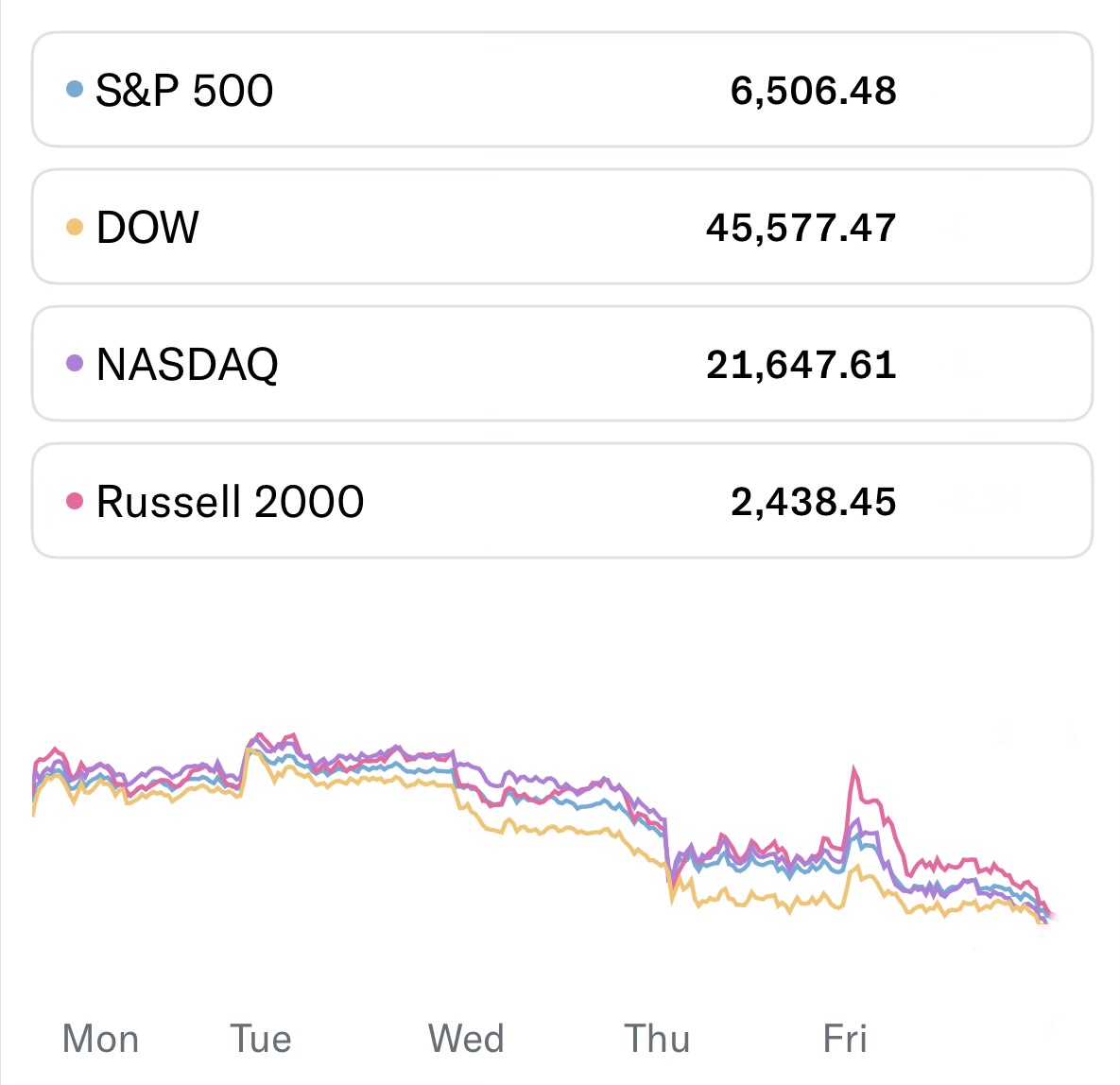 שוק ההון בארה"ב חתם את שבוע המסחר בירידות שערים, על רקע מתיחות ביטחונית ונתוני מאקרו מאכזבים. ההסלמה מול איראן שכללה חסימה של מצרי הורמוז ופגיעה בתשתיות אנרגיה, הכבידה על השווקים. במקביל, מדד המחירים ליצרן הצביע על חזרת לחצים אינפלציוניים, מה שהוביל את יו"ר הפד להעריך כי השנה תיתכן הורדת ריבית אחת בלבד.מדד ה-S&P500 ירד ב-1.90%, הנאסד"ק סגר ירידה של 2.07%, הדאו ג'ונס ירד ב-2.11%. תשואות האג"ח לעשור עלו ב-2.5% אל 4.38%.