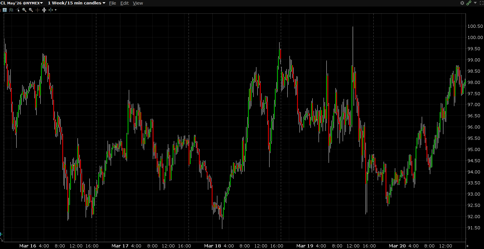 מחיר חבית נפט נסגר ביום שני במחיר 98.32 דולר לפי חוזה עתידי CL שעוקב אחרי מחירי הנפט, מה שמסכם עליה שבועית של 1.53% בשבוע החולף.