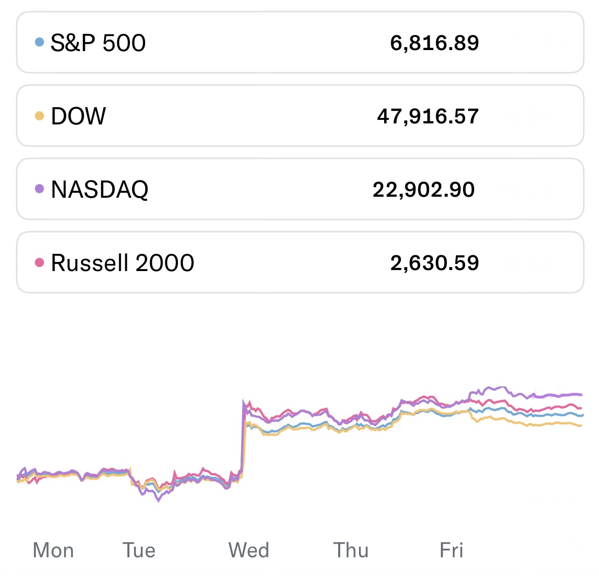 שוק ההון בארה"ב חתם את השבוע בעליות שערים ורשם תיקון חד כלפי מעלה, לאחר תקופה של ירידות ממושכות. המגמה החיובית בשווקים נתמכה גם בחדשות הגיאופוליטיות, ביניהן איתותים להרגעת המתיחות מול איראן, נכונות לדיאלוג מצד טהרן והערכותיו של טראמפ כי המלחמה לא תימשך עוד זמן רב. מדד ה-S&P500 עלה ב-3.36%, הנאסד"ק סגר עליה של 4.44%, הדאו ג'ונס עלה ב-2.96%. תשואות האג"ח לעשור ירדו ב-2.14% אל 4.34%.