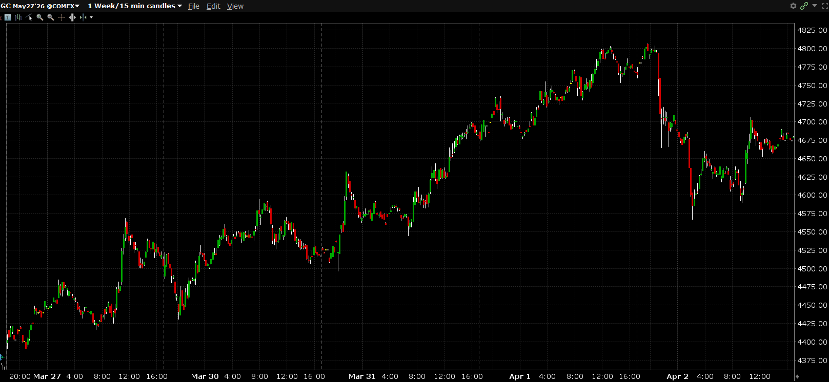 מחירו של הזהב נסגר ביום חמישי האחרון במחיר של $4,675 לאונקיית זהב לפי חוזה עתידי GC שעוקב אחרי מחירי הזהב, מה שמשקף עליה שבועית של 6.2%.