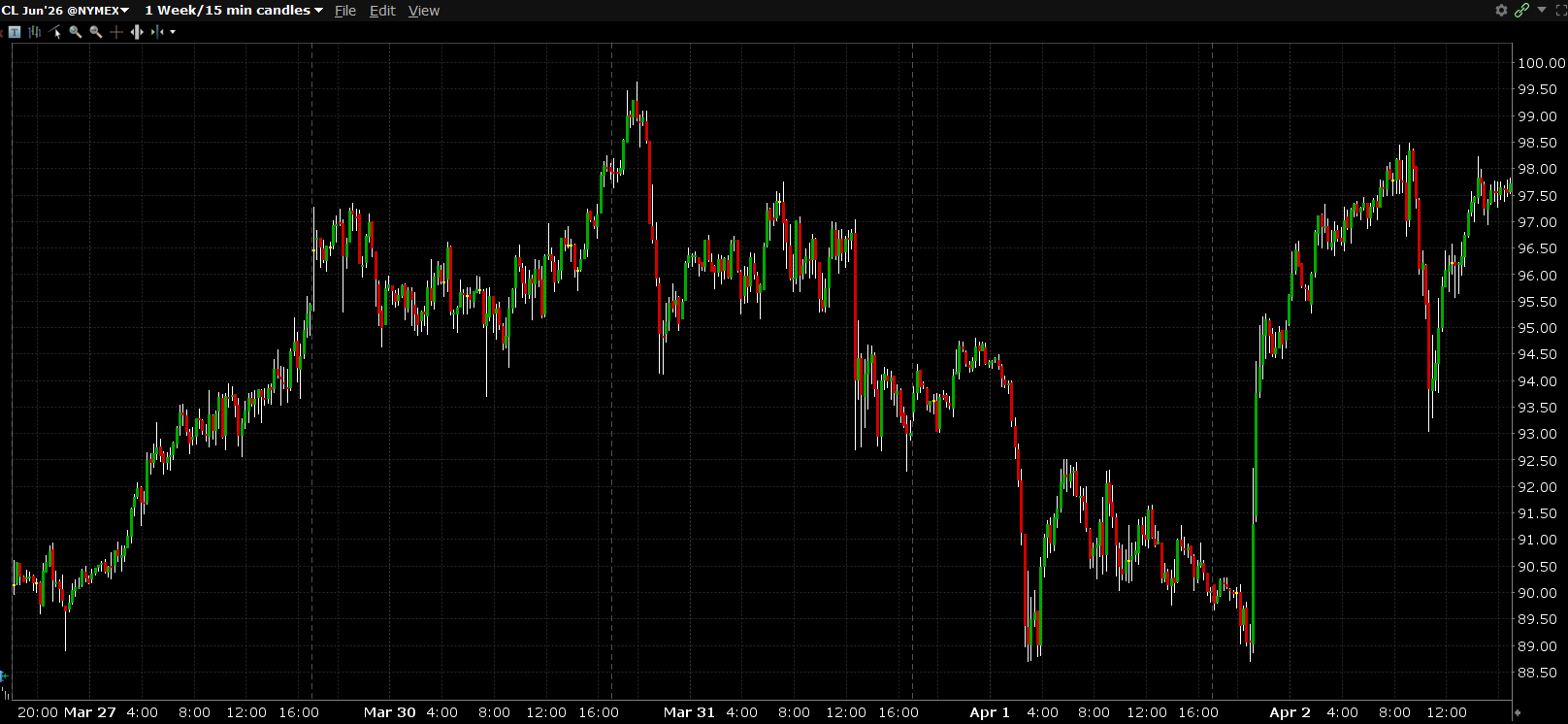 מחיר חבית נפט נסגר ביום חמישי במחיר 97.5 דולר לפי חוזה עתידי CL שעוקב אחרי מחירי הנפט, מה שמסכם עליה שבועית של 9.5% בשבוע החולף.